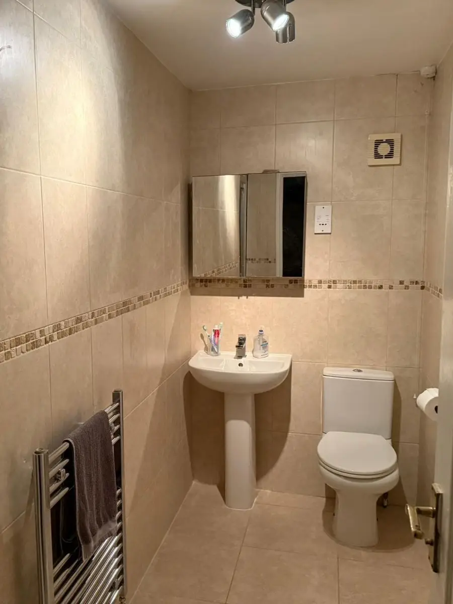 Creating a calm, modern yet subtly rustic atmosphere was our client’s main priority for this bathroom. The brief was intentionally minimal, with only a shower, basin, and toilet required. The original layout placed the shower within a small recess at one end of the room, leaving a long, underused walkway where the basin and toilet were positioned. Combined with floor-to-ceiling tiling in dated finishes, the space felt narrow and claustrophobic.